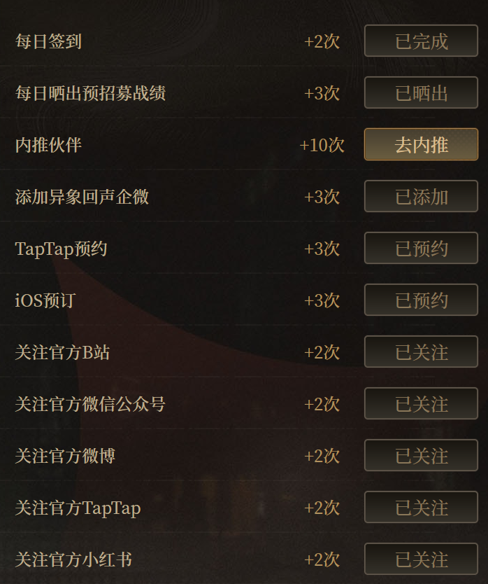 1.活动期间,科长通过完成关注、预约、邀请好友等任务可获得相应抽卡次数。